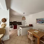 Mini-Villa A 5 Minutes De La Plage De Santa Giulia comprend un réfrigérateur et un four dans une kitchenette pour cuisiner. Vous pourrez déguster des plats modernes à Carré Noir, situé assez proche de villa.
